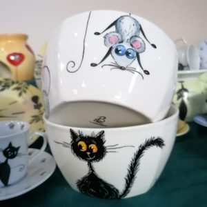 Egyedi kézzel festett magas minőségű cicás dekorral festett cicás porcelánok, tányérok, bögrék, egyéb ajándékok. Termékeink minőségi porcelánból készülnek a megrendelő egyedi elképzelései alapján.
