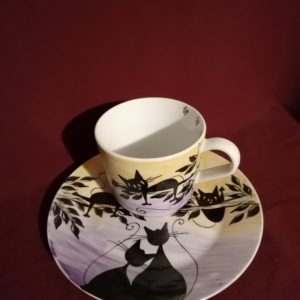 Macskás minibögre kézzel festve, 1,5 dl-es