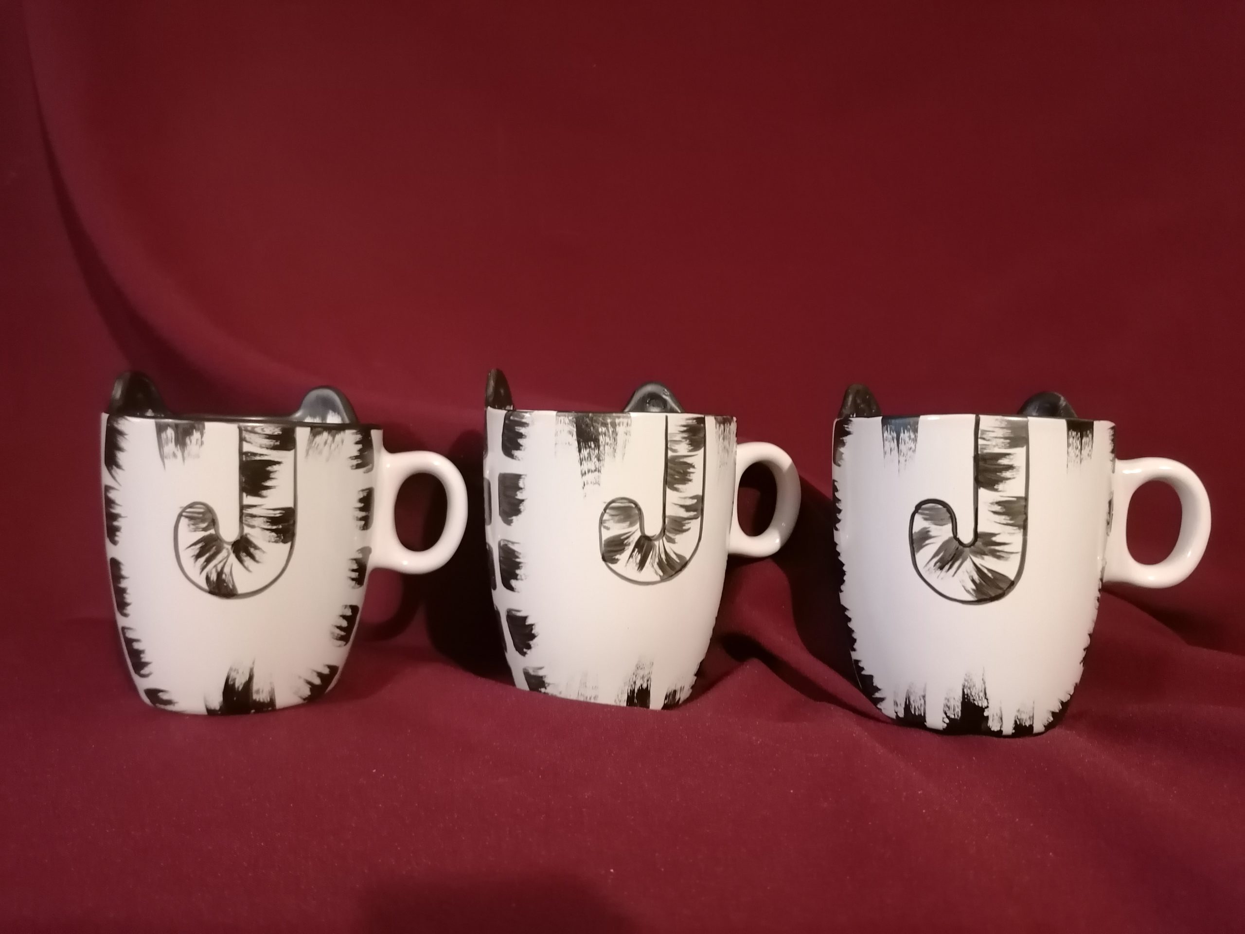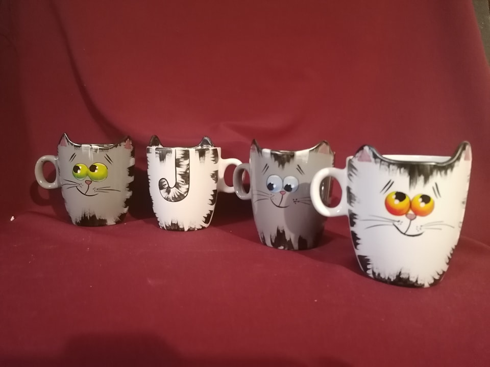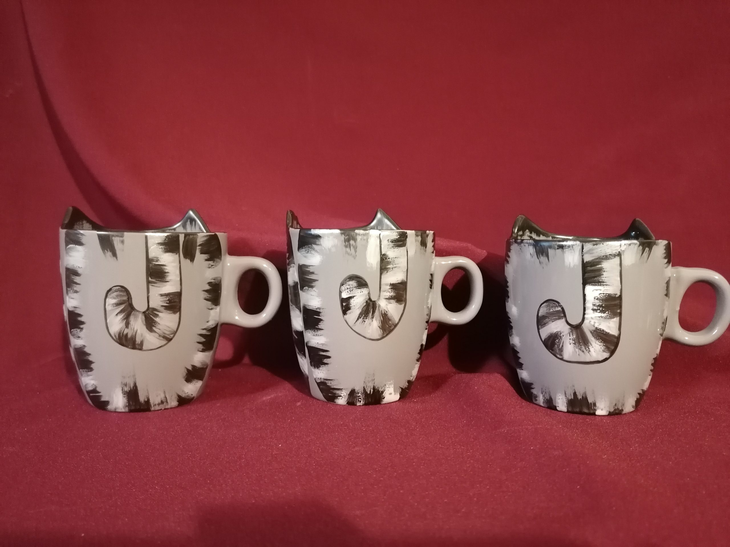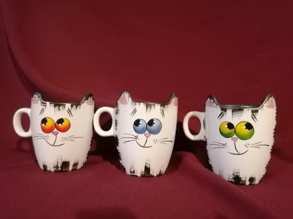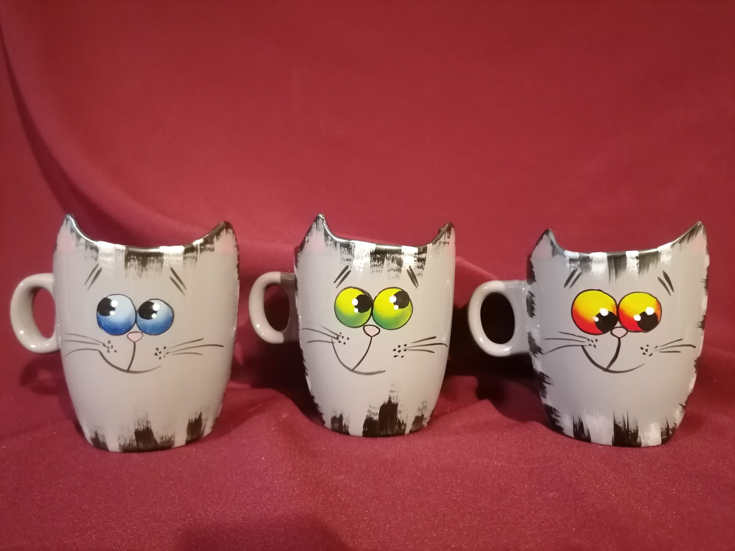 Kézzel festett cicafüles bögre, két színben 2 dl-es kerámia