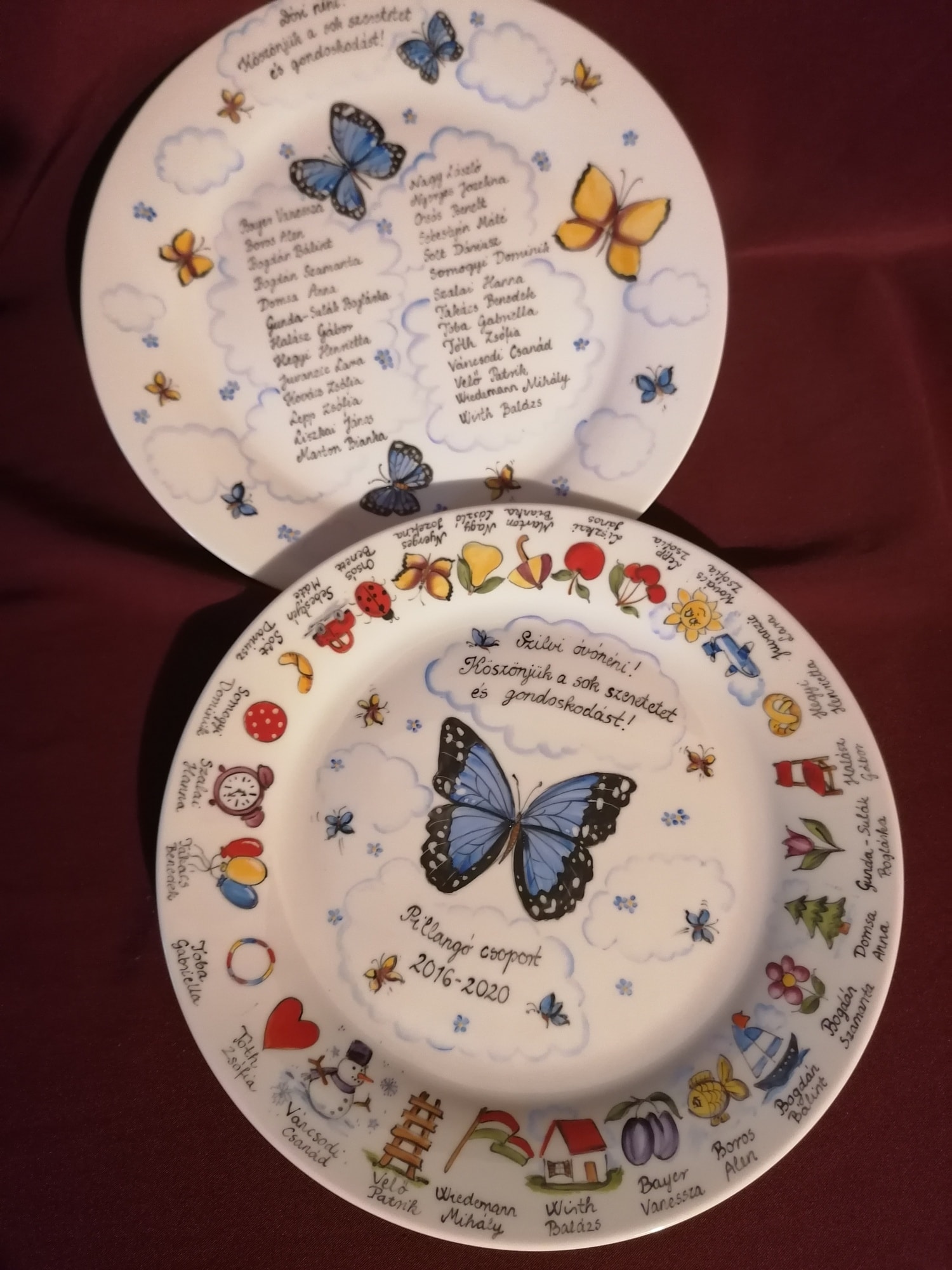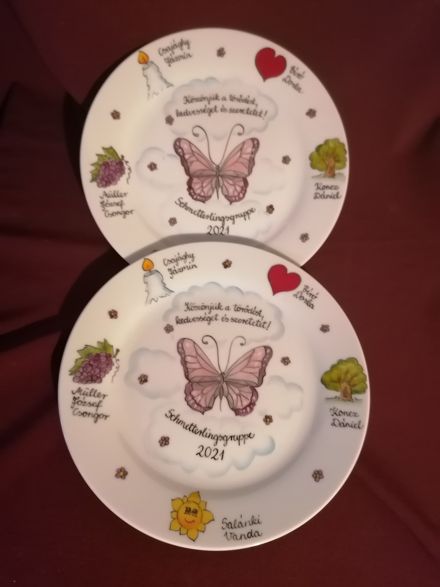 A megrendelt tányérokat nagyon szép kivitelben, gyors határidővel kaptuk meg. Minden apró részletet egyeztetni tudtunk a készítés során. Gyönyörű ballagási ajándék lett belőle!