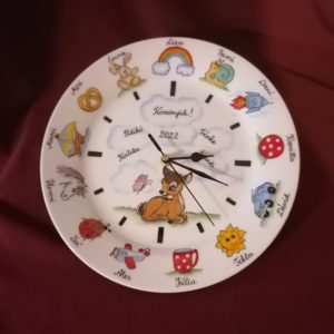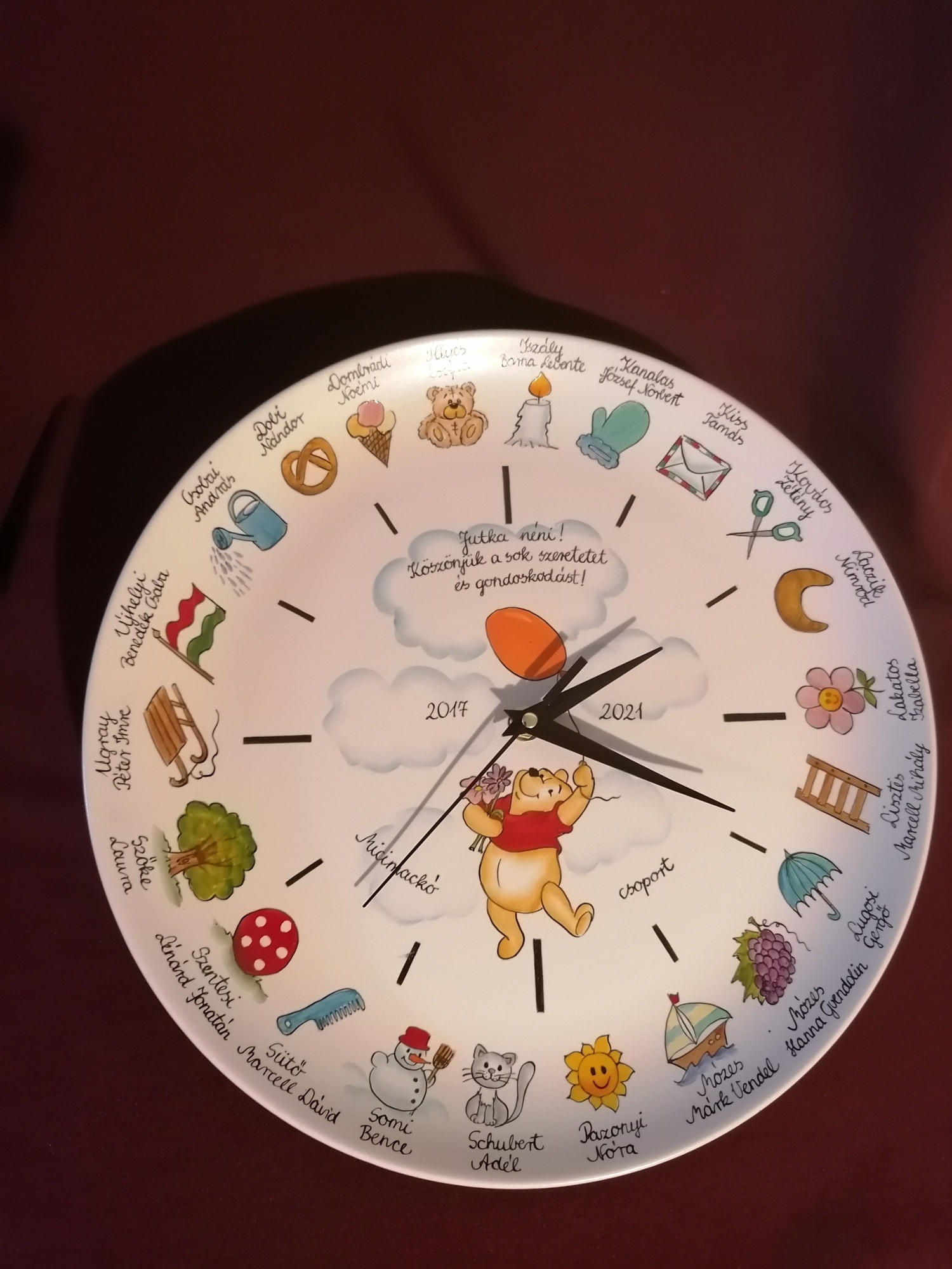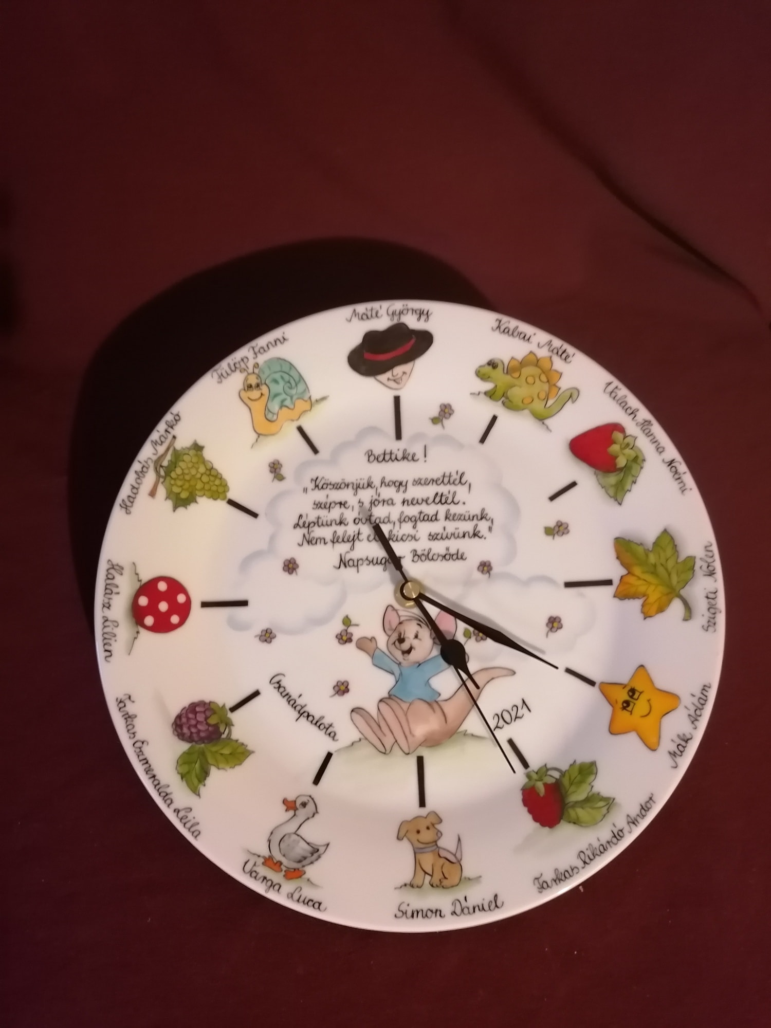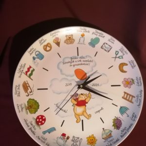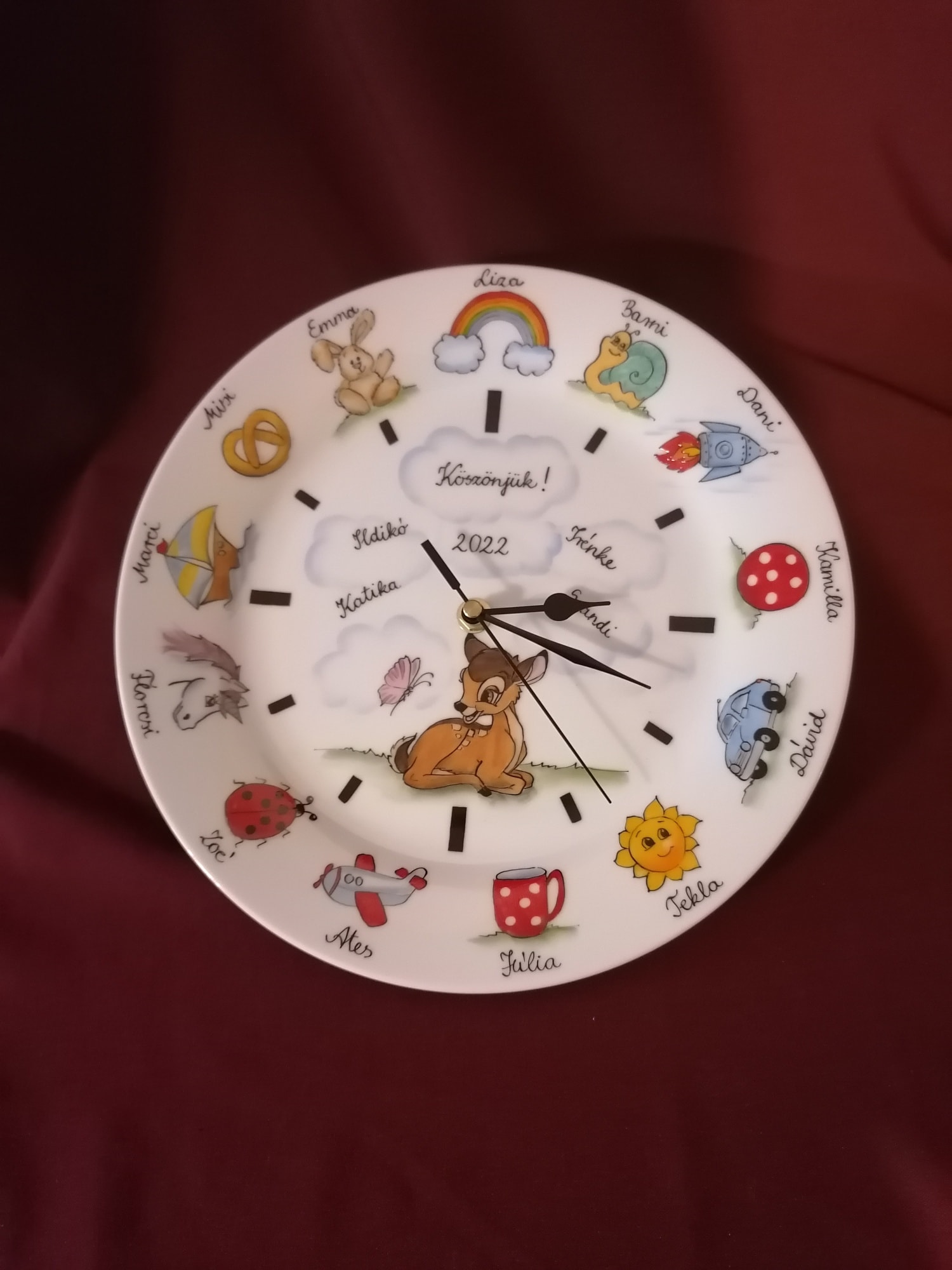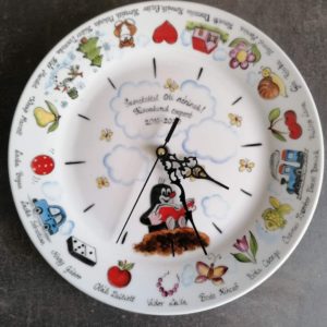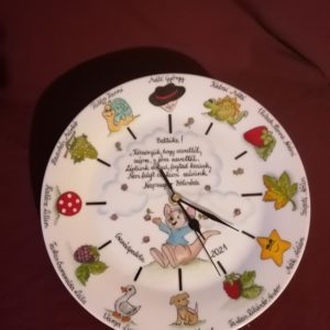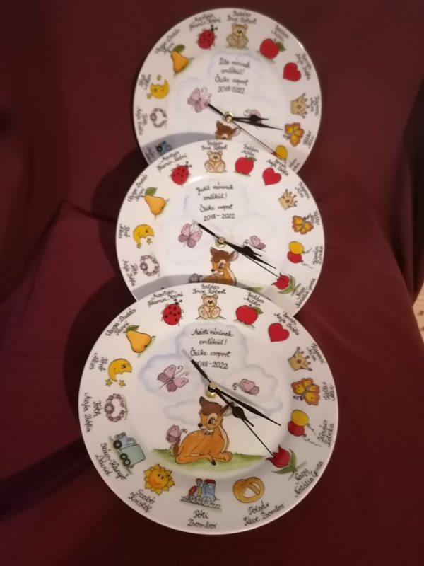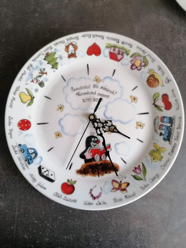 Óvodai ballagási ajándék porcelán óra egyedi mintával óvodai, bölcsődei ballagásra kézzel festve.