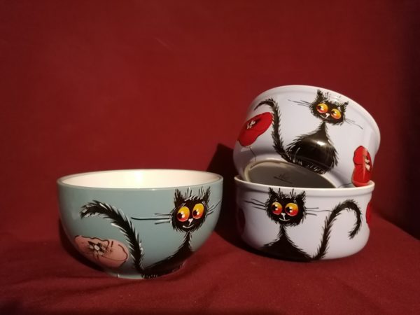 Fekete cicás tálka