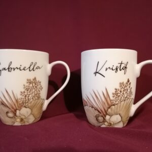 Egyedi mintás bögre vendégeknek, akár névre szólóan is. Lepjétek meg a vendégeiteket igazán különleges és ráadásul hasznos ajándékkal. Az asztal egyik dísze lehet, így ültetőként, ajándékként is funkcionál. Többféle fazonban is elérhető. Kérheted személyenként, páronként ahogy Te szeretnéd!