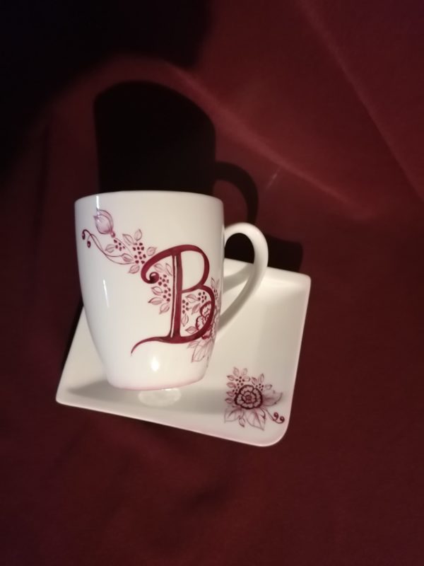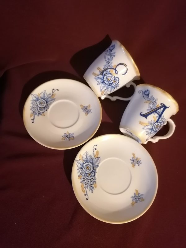 Egyedi mintás kávés szett vendégeknek, akár névre szólóan is.