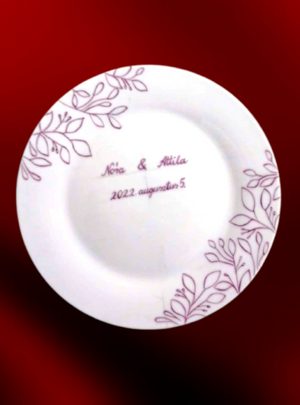 Esküvői köszönetajándék, személyre szabott mintával, tányérra, bögrére, és egyéb porcelánra is kérhető!