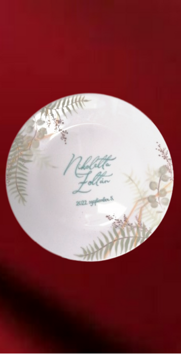 Esküvői köszönetajándék, organikus mintával, tányérra, bögrére, és egyéb porcelánra is kérhető!
