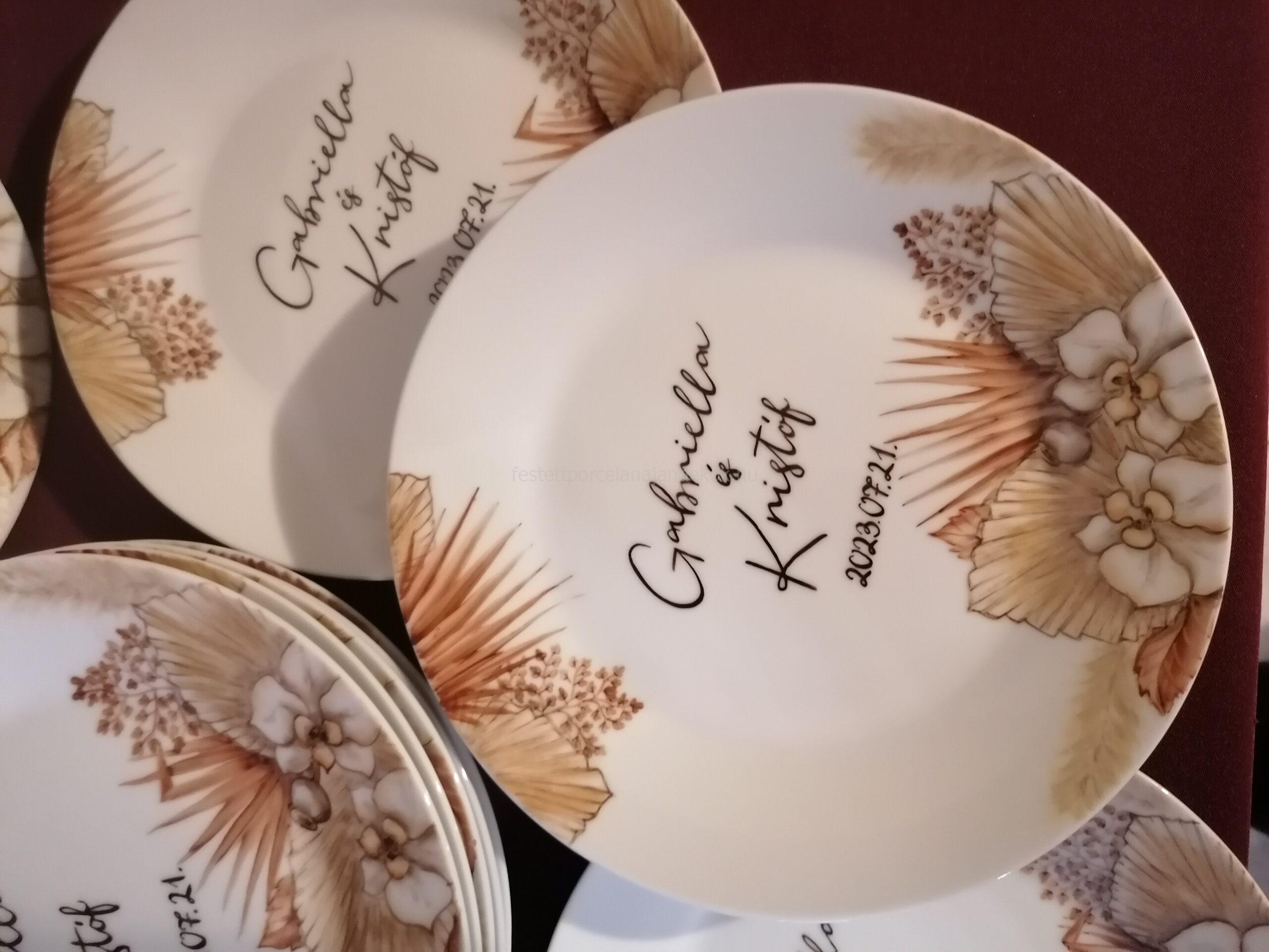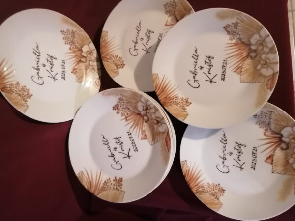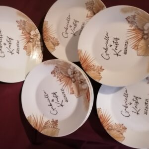 Esküvői köszönetajándék, egyedi mintával, tányérra, bögrére, és egyéb porcelánra is kérhető!