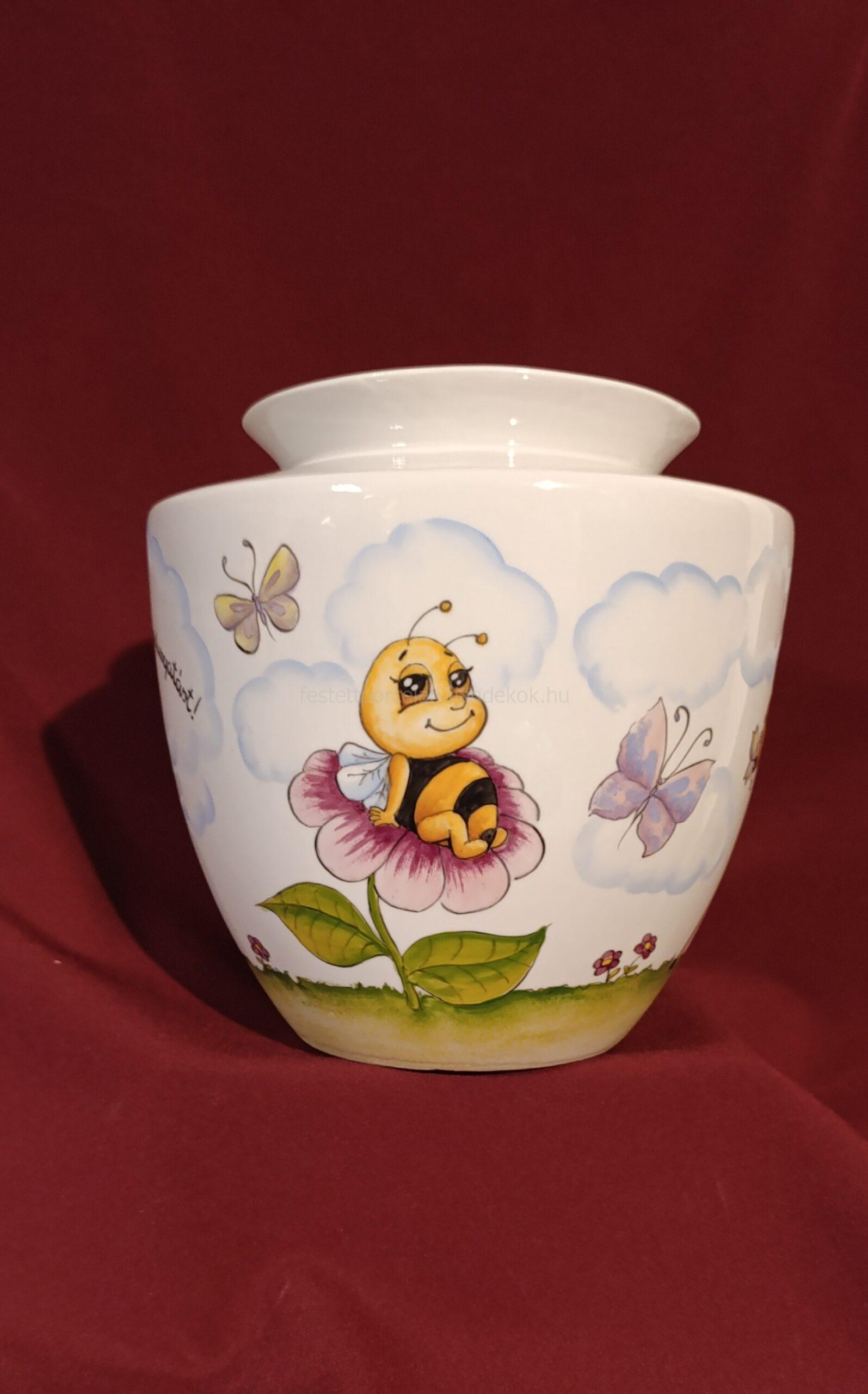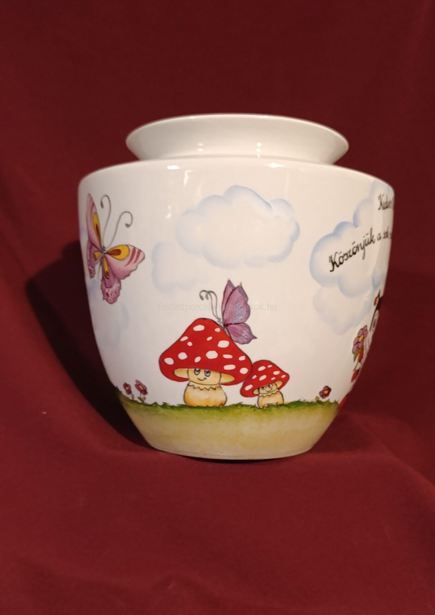 Kézzel festett porcelán váza egyedi mintával óvodai, bölcsődei ballagásra