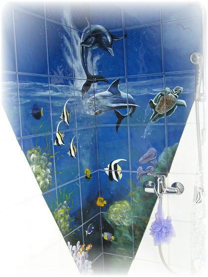 Kézzel festett fürdőszobai fali csempe tengeralatti élővilág ábrázolással az ár darabár! A termék egyedi megrendelés alapján készül!