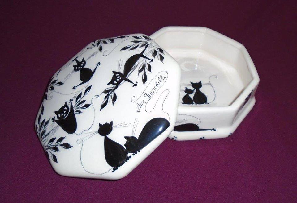 Macskás bonbonier kézzel festve