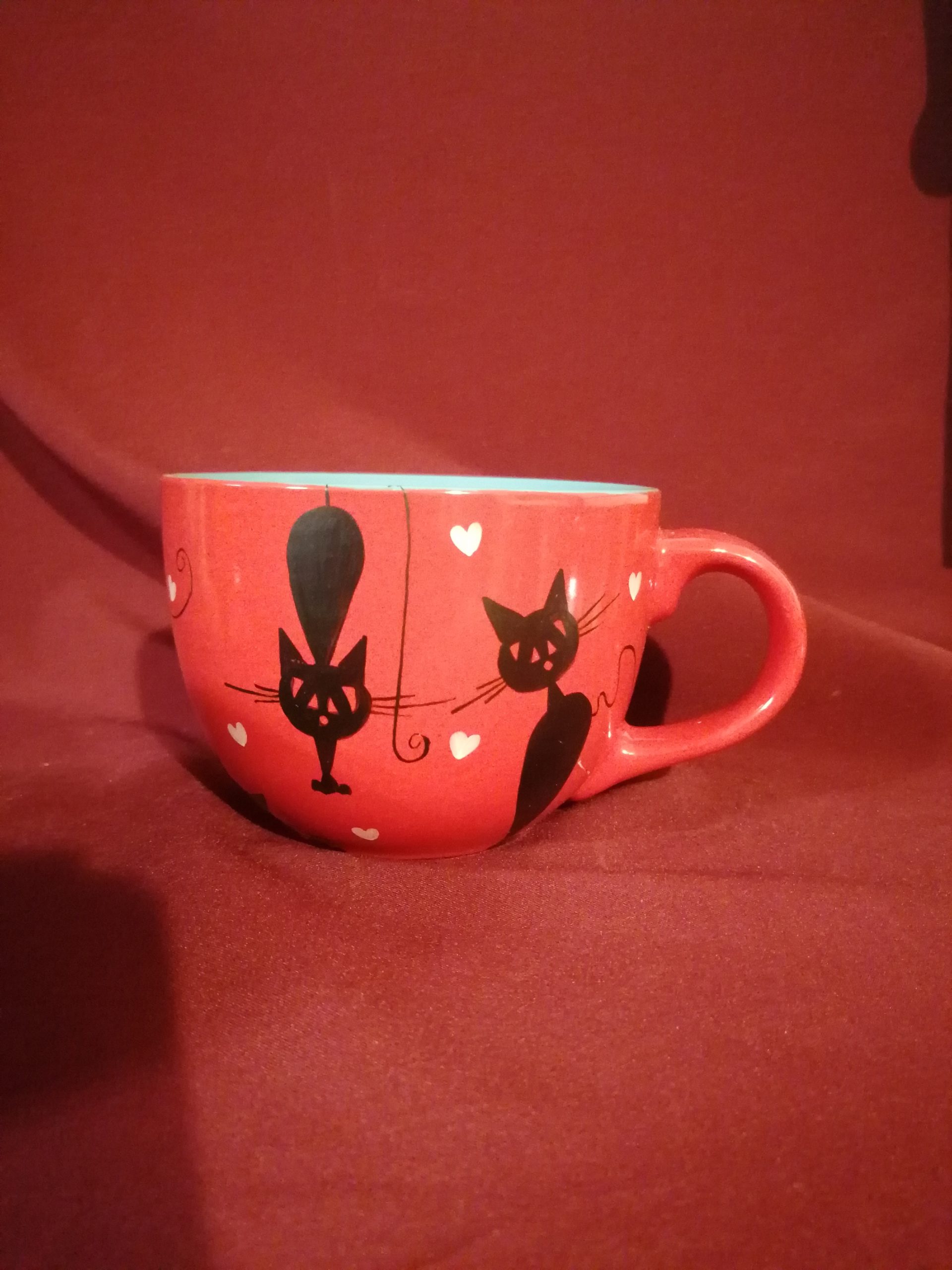 Macskás jumbo bögre kézzel festve, 4,5 dl-es