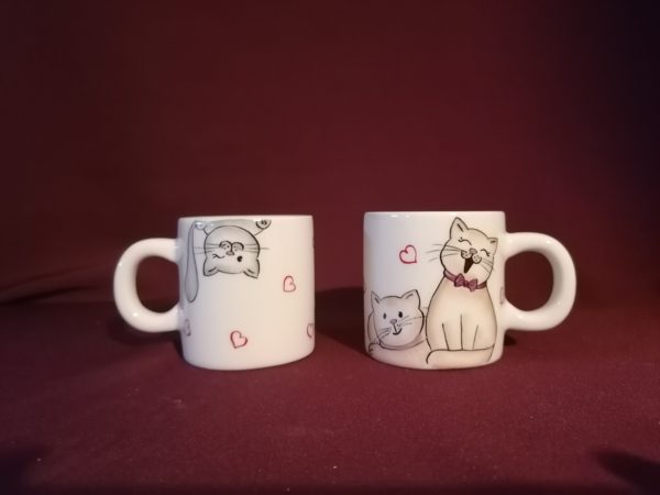 Kézzel festett cicás minibögre.