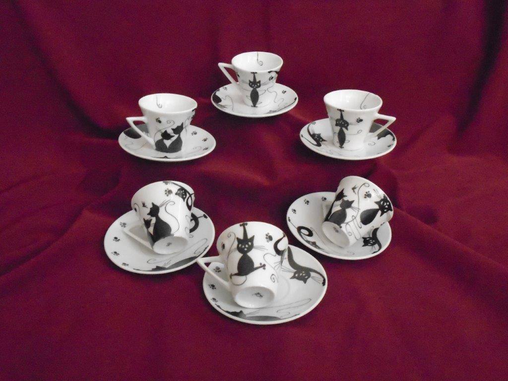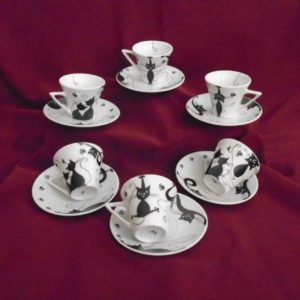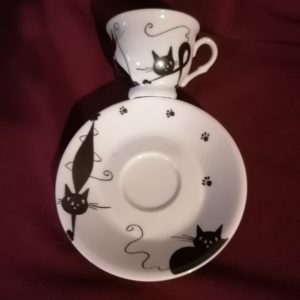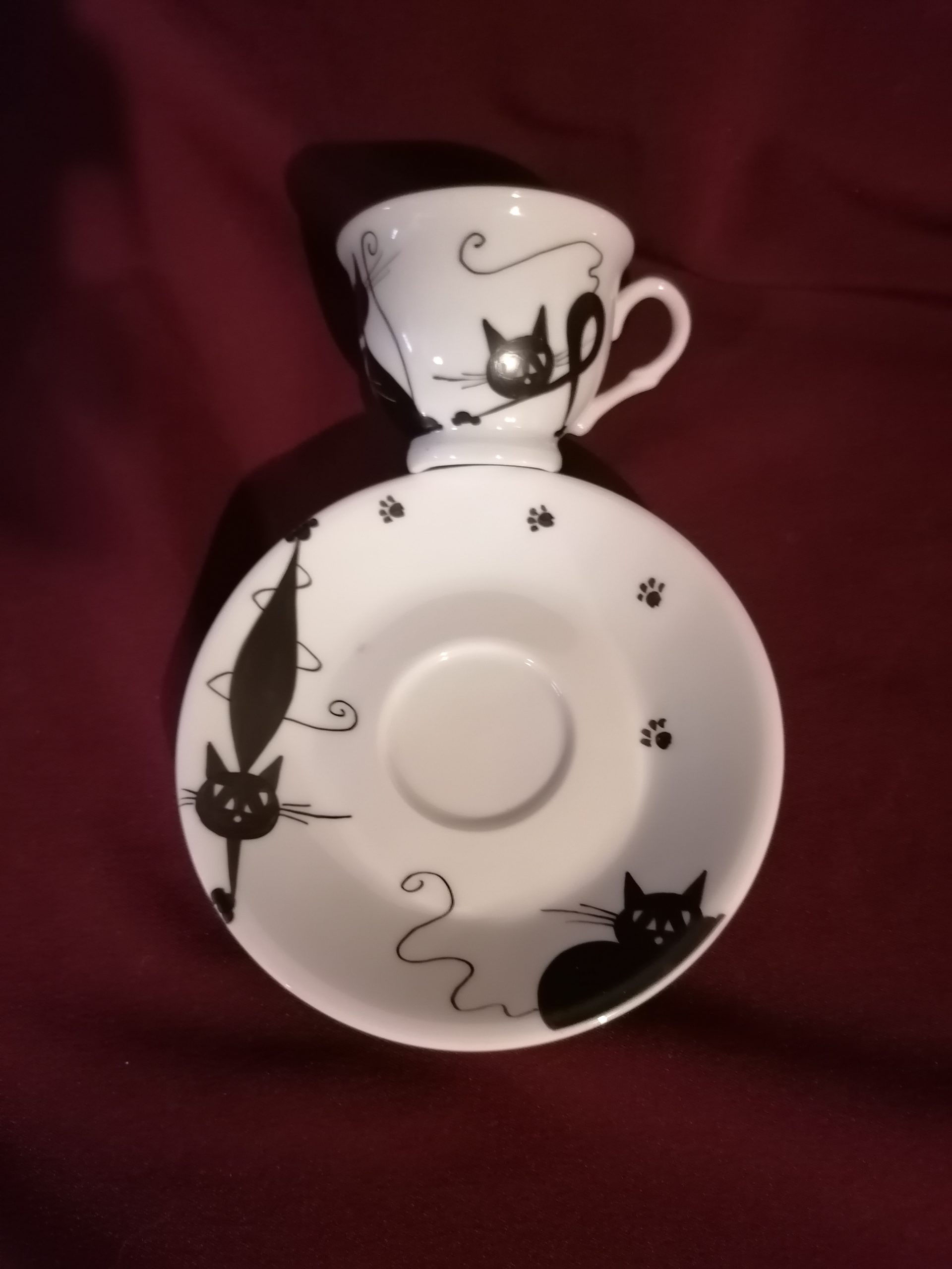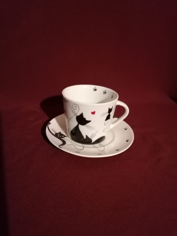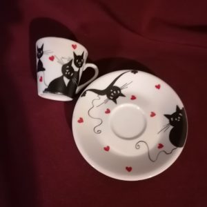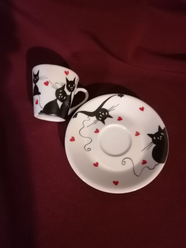 Kézzel festett cicás eszpresszós szett, tartalma 1 db csésze,+alj
