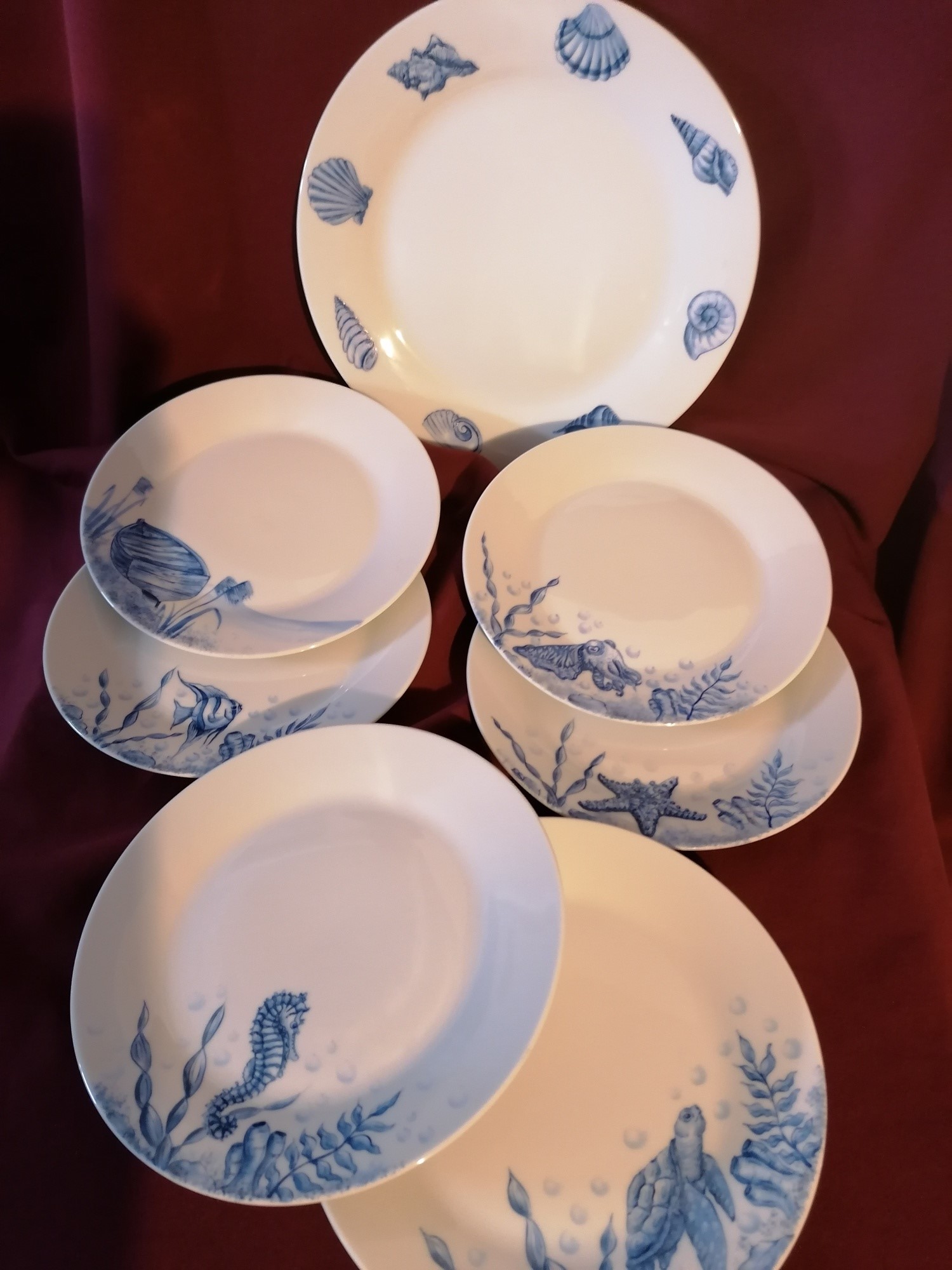 Nászajándék porcelán sütis készlet,tengerparti hangulattal