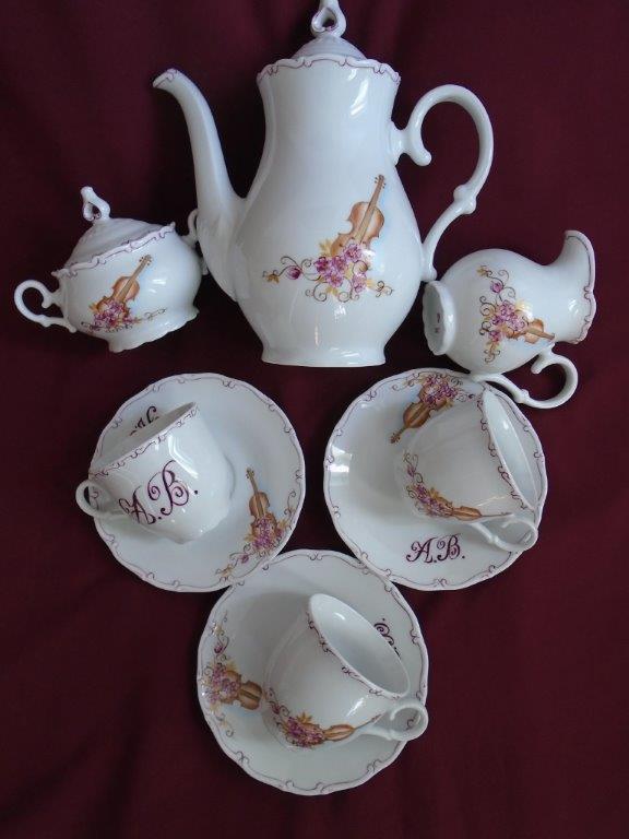 Nászajándék porcelán teás készlet, 6 személyes, kézzel festve.