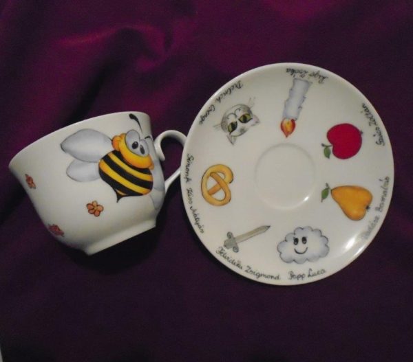 Kézzel festett óvodai ballagási bögre+tányér szett