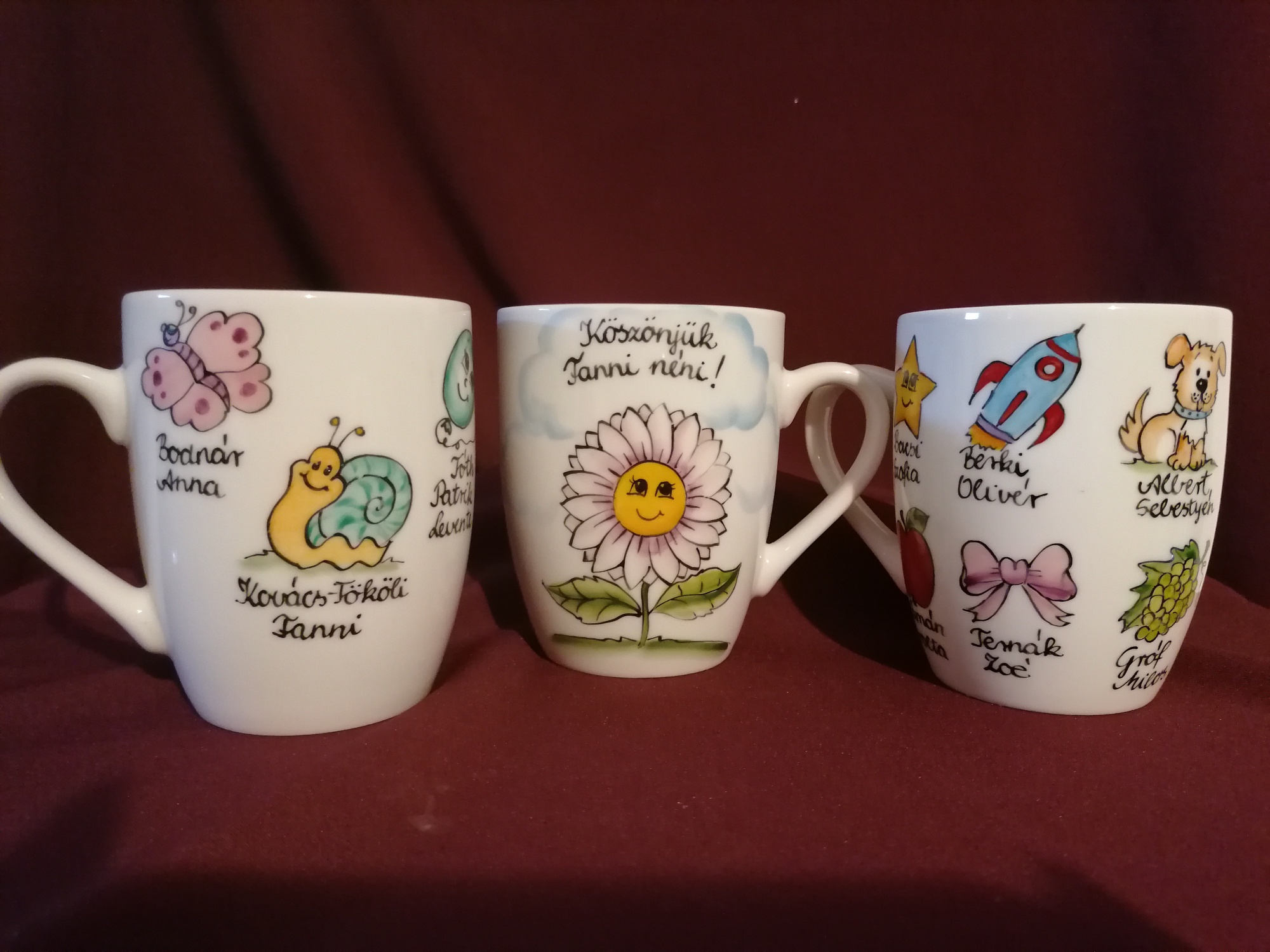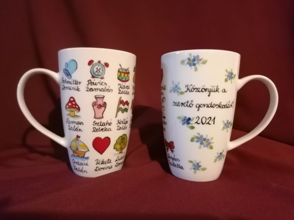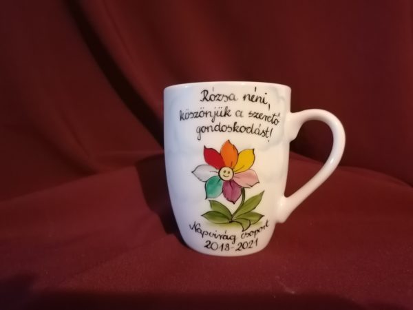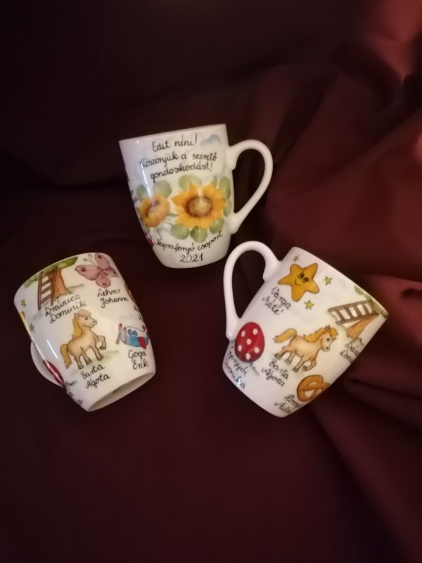 Kézzel festett porcelán bögre óvó néniknek ballagási ajándékba.