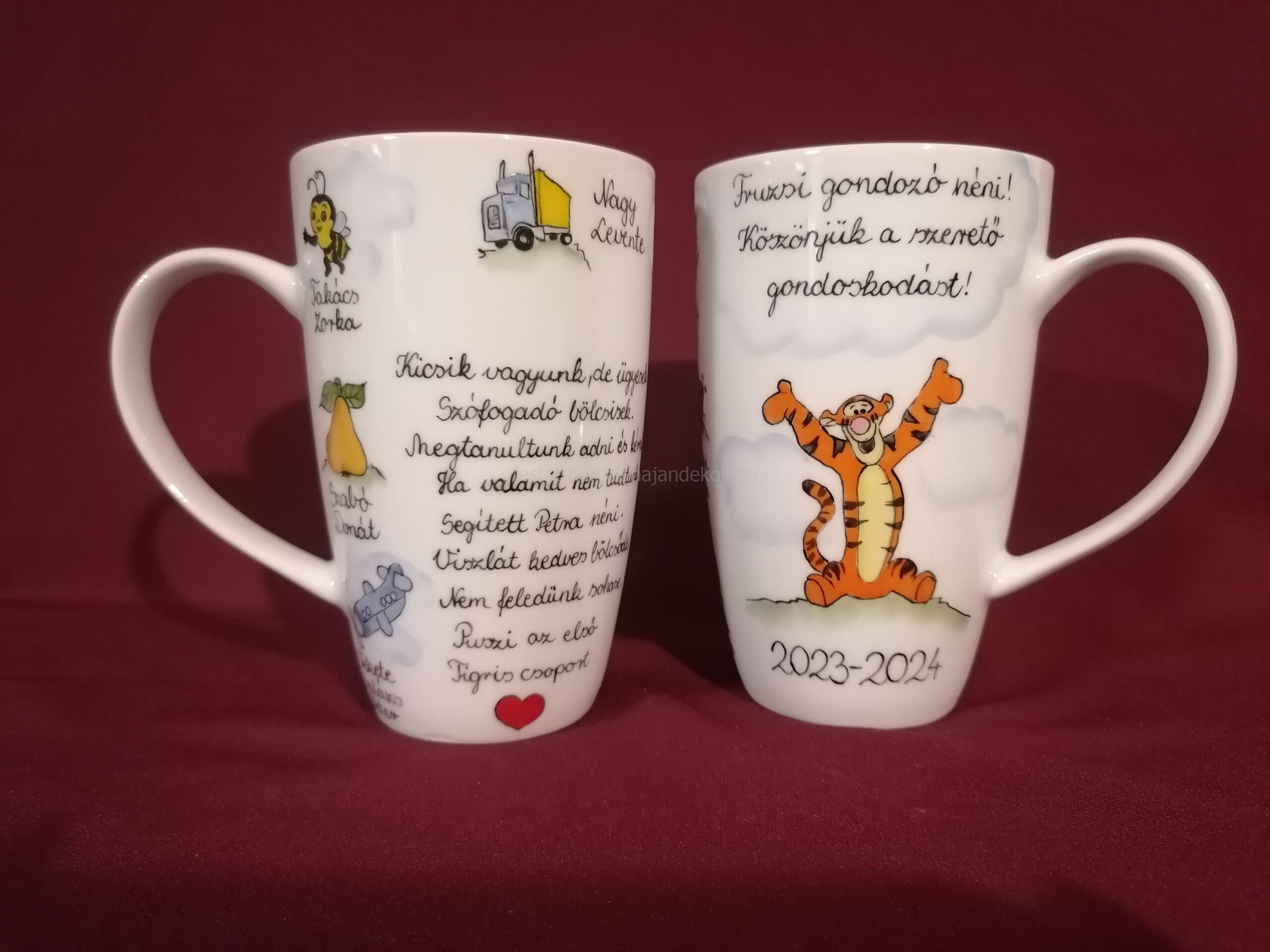 Kézzel festett porcelán bögre óvó néniknek ballagási ajándékba, csoportjellel.