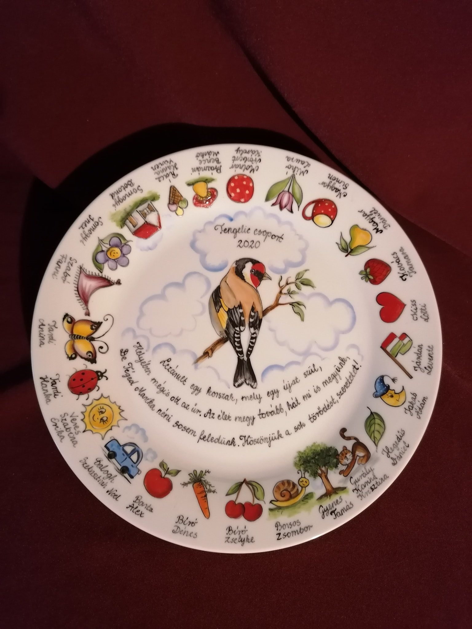 Kézzel festett óvodai ballagási tányér madaras mintával
