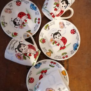 Minőségi porcelánból 740 fokon beégetve, tehát örök életű, illetve mikrózható és mosogató gépben is mosható.