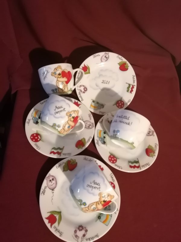 Kézzel festett óvodai ballagási ajándék kávés szett.