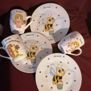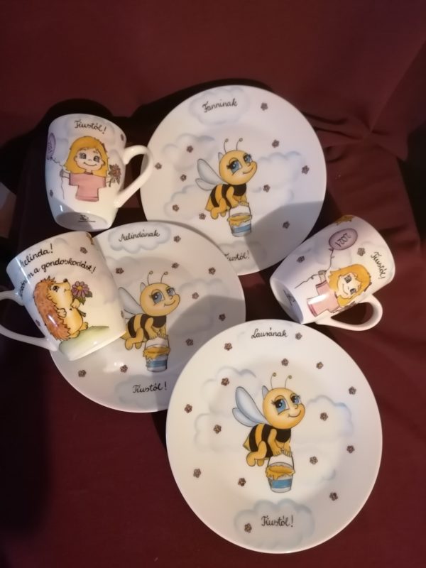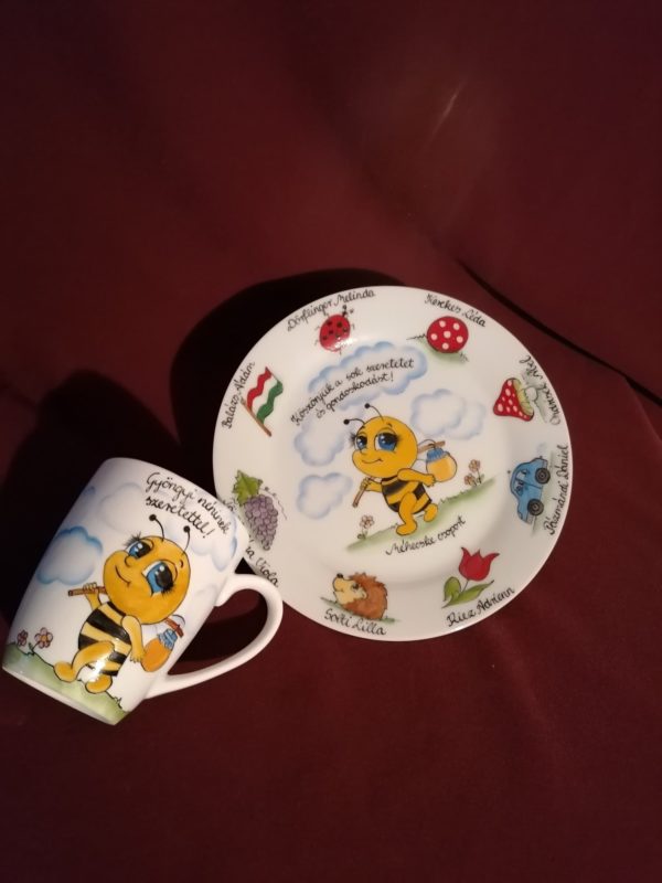Kézzel festett óvodai ballagási ajándék bögre+tányér szett
