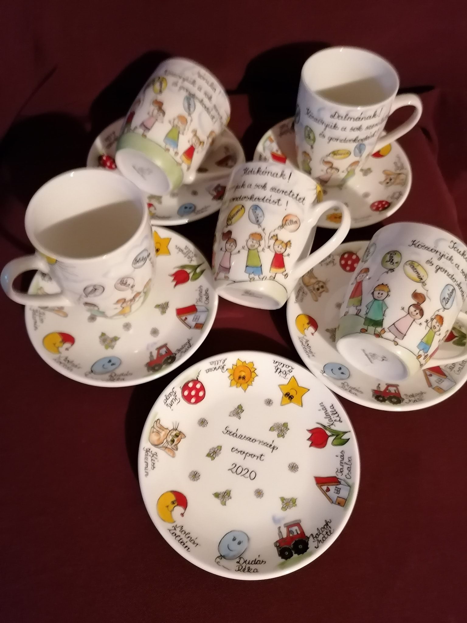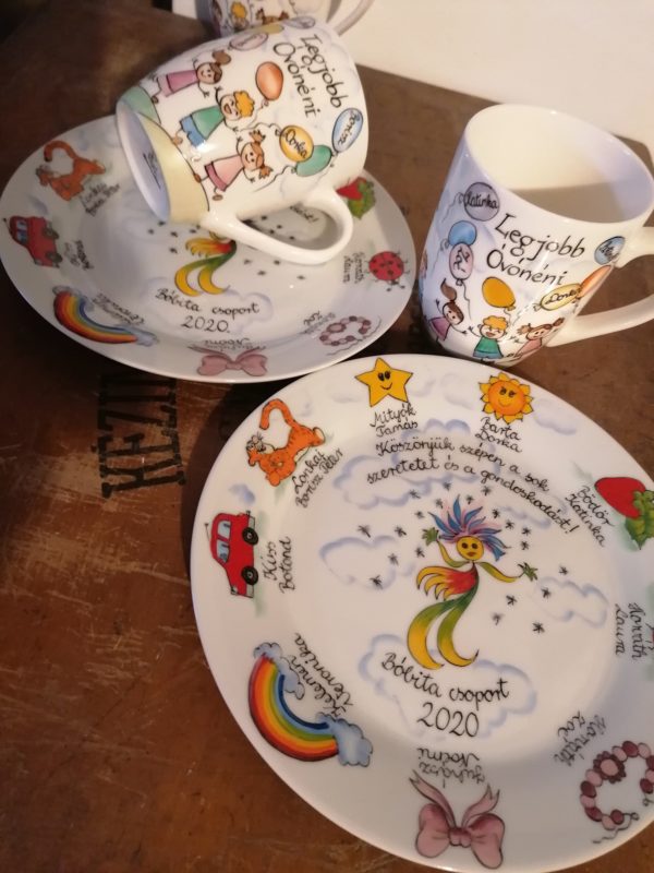 Kézzel festett óvodai ballagási bögre+tányér szett