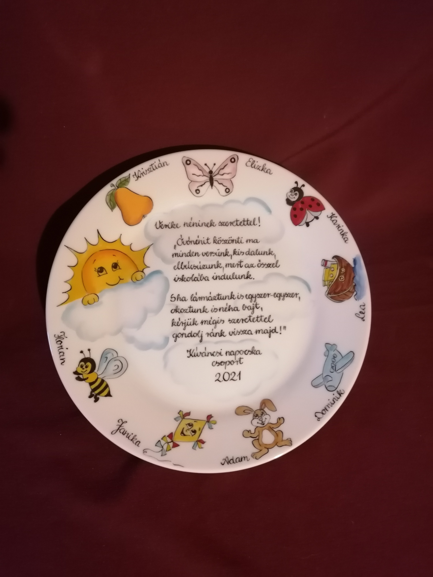 Kézzel festett óvodai ballagási tányér napocskás mintával