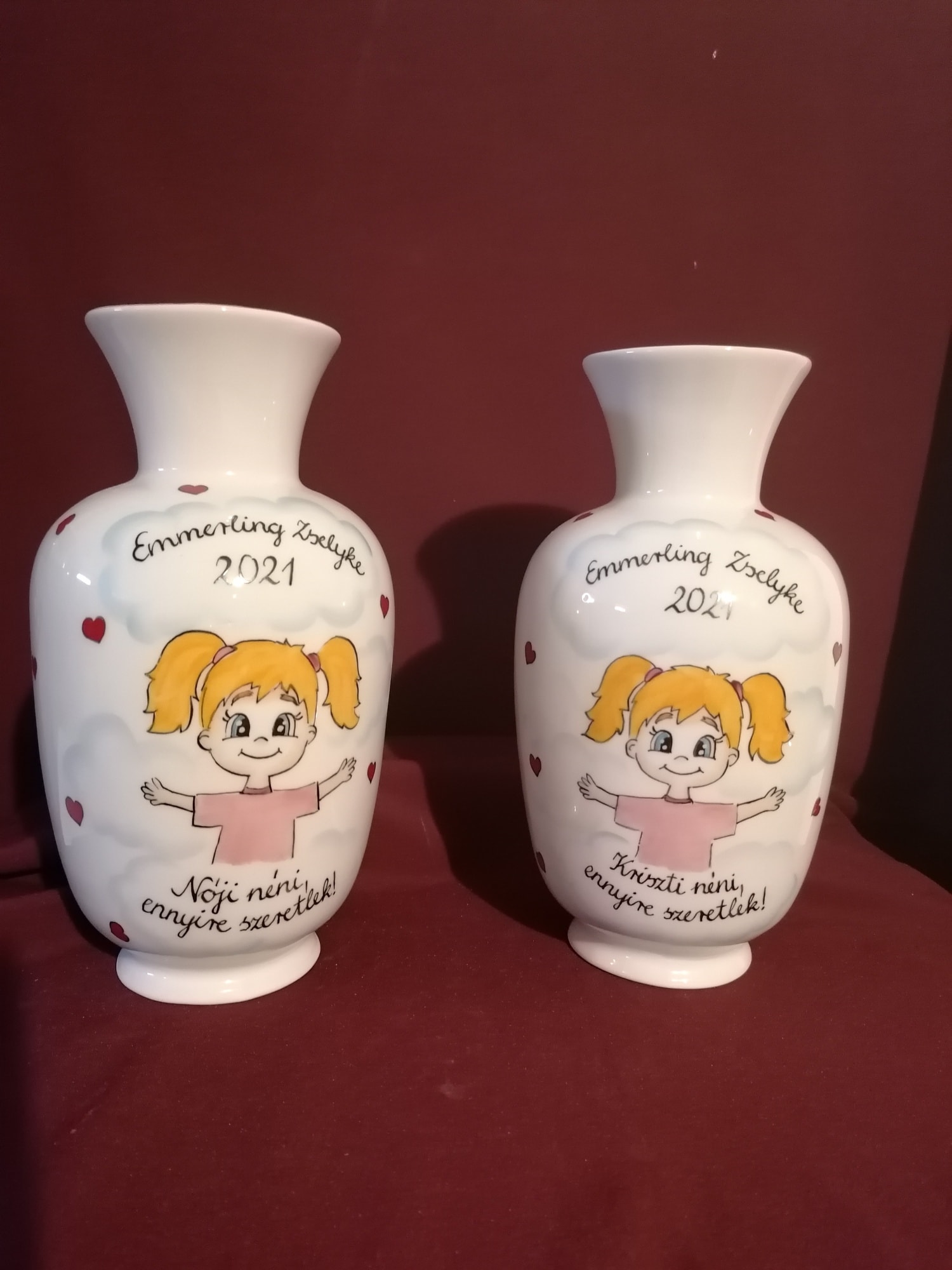 Kézzel festett porcelán váza egyedi mintával, óvodai , iskolai ünnepekre,