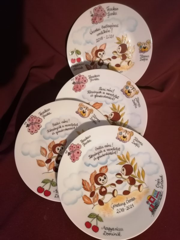 Kézzel festett óvodai ballagási tányér csoportjeles mintával