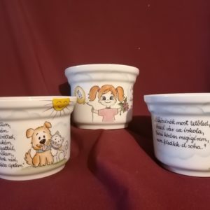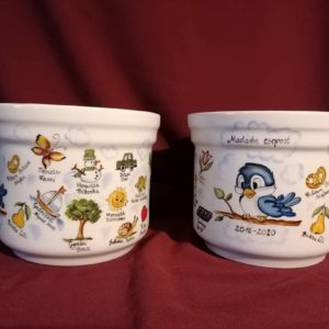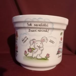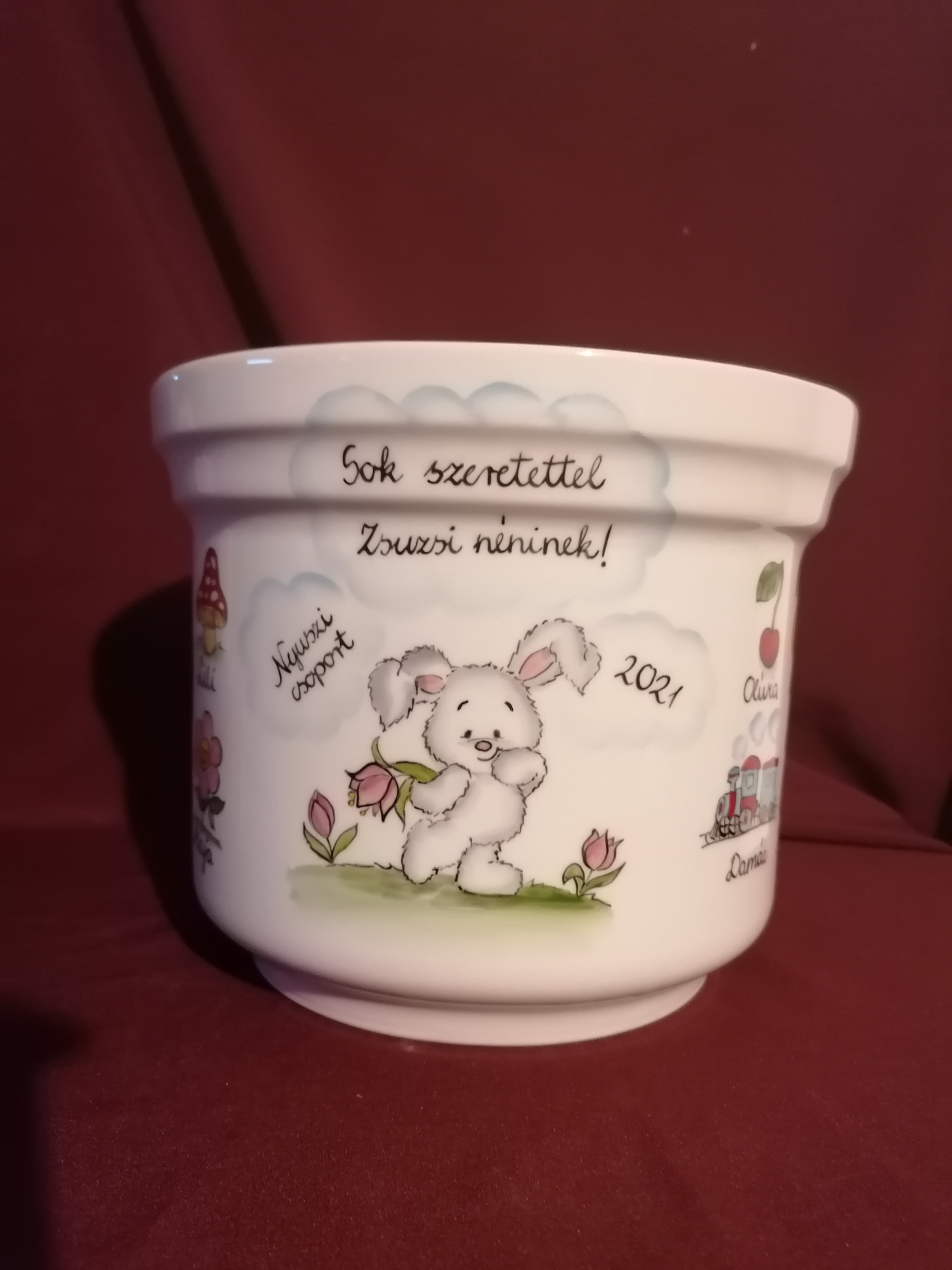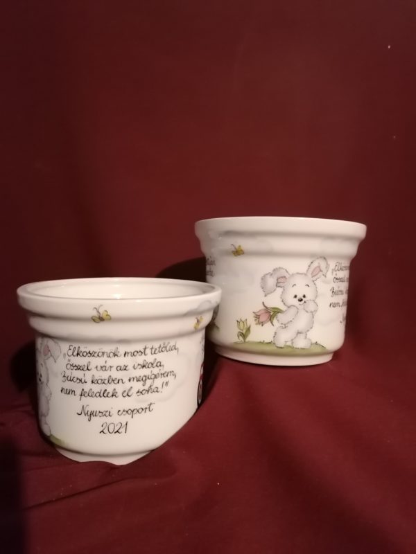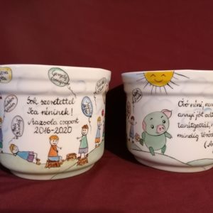 Kézzel festett porcelán kaspó egyedi mintával óvodai, bölcsődei ballagásra.
