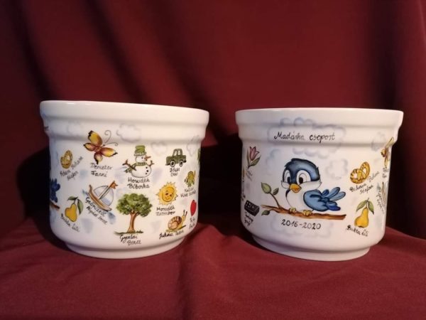 Óvónőknek köszönő ajándék Kézzel festett porcelán kaspó egyedi mintával óvodai, bölcsődei ballagásra.
