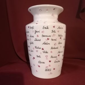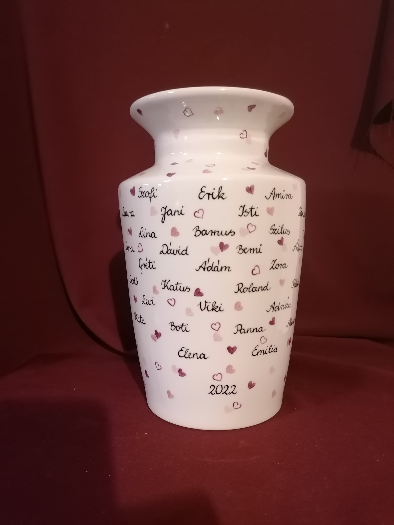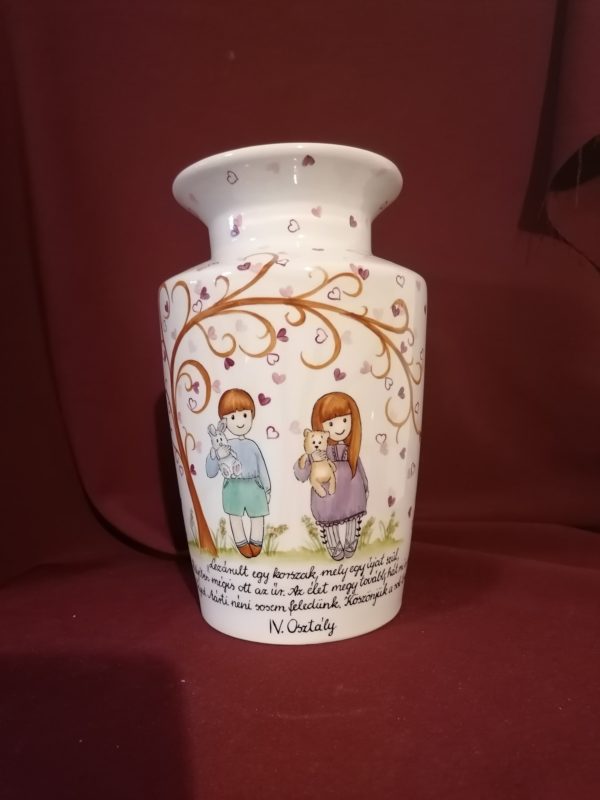 Kézzel festett porcelán váza kislány & kisfiú mintával iskolai, óvodai ballagásra.